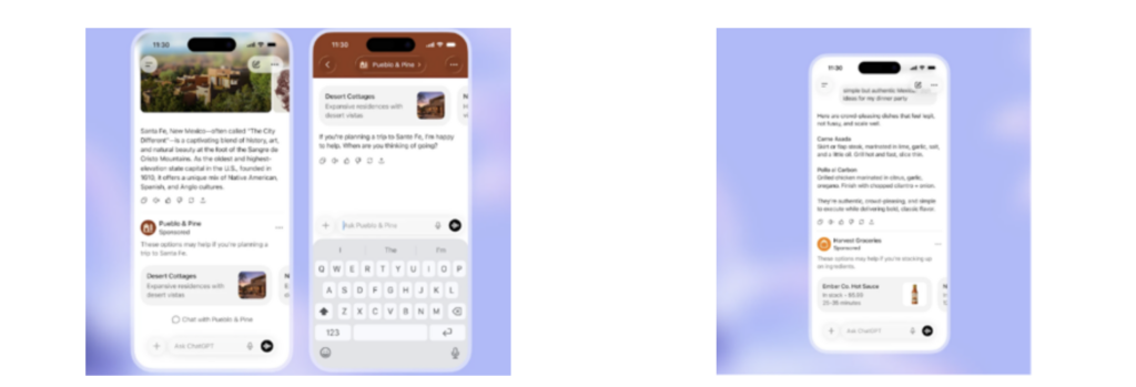 Podľa OpenAI sa v blízkej budúcnosti budú testovať aj ďalšie formy reklamy s možnosťami pýtať sa otázky o zobrazenej reklame priamo v rozhraní ChatGPT, a tak pomáhať používateľom s nákupnými rozhodnutiami.