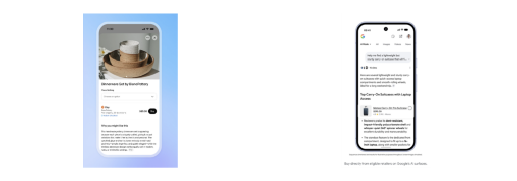 Podobne Google umožňuje priamy nákup v AI Mode a v rozhraní Gemini. Podobne ako v prípade ChatGPT, aj Google momentálne podporuje túto funkciu iba na americkom trhu a expanziu do ďalších geografických oblastí chystá v najbližších mesiacoch.